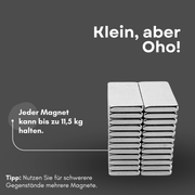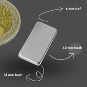 Neodym Magnet 40mm x 15mm x 6mm - N38 Supermagnet - Quadermagnete - Hohe Haftkraft bis 11,5kg