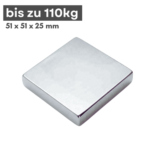 Neodym Magnet 51mm x 51mm x 25mm - N38 Supermagnet - Quadermagnete - Hohe Haftkraft bis 110kg