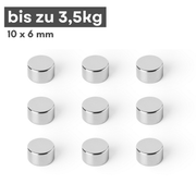 Neodym Magnet Ø 10mm x 6mm - Starker Scheibenmagnet - N42 Supermagnet - Hohe Haftkraft bis 3,5kg