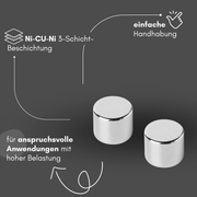 Gefertigt aus Neodym-Eisen-Bor (NdFeB) und mit einer robusten vernickelten Dreifachbeschichtung (Ni-Cu-Ni) ausgestattet, bietet dieser Magnet nicht nur starke Haftkraft, sondern auch ausgezeichneten Korrosionsschutz und lange Lebensdauer selbst bei anspruchsvollen Einsatzbedingungen.