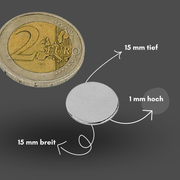 Neodym Magnet Ø 15mm x 1mm - Starker Scheibenmagnet - N38 Supermagnet - Hohe Haftkraft bis 800g