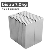 Neodym Magnet 40mm x 8mm x 5mm - N38 Supermagnet - Quadermagnete - Hohe Haftkraft bis 7kg