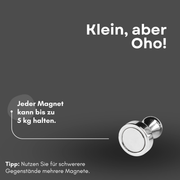 Incredible holding power: Thanks to the high-quality neodymium technology, each magnet can hold up to 5 kg and ensures maximum stability.