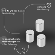 Thanks to its axial magnetization (parallel to the height), this powerful disc magnet is perfect for flush mounting and concealed fastenings. The high-quality triple nickel-copper-nickel coating protects against corrosion and significantly extends the service life of the magnet.