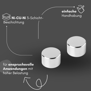 Die dreifache Nickel-Kupfer-Nickel-Schicht schützt zuverlässig vor Abnutzung, Oxidation und Feuchtigkeit – für eine dauerhaft hohe Magnetleistung.